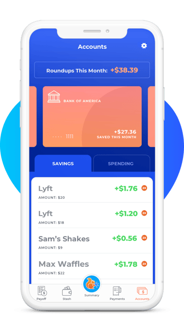 Track each month's roundups and savings from your linked accounts here. Swipe through your accounts and scroll to see just how many roundups each account brings.