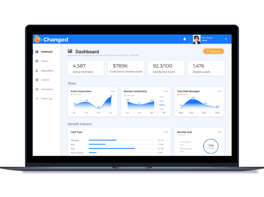 Your customers want to know how to manage and pay down their debt. But without the proper resources, they can quickly feel overwhelmed. With a tool like Changed, your members can monitor their savings and put more money toward debt repayment with every purchase they make.